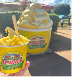 パイナップルの歴史が楽しめる列車ツアーや、パイナップルガーデンの巨大迷路などのアクティブティが楽しめ、オリジナルグッズやお土産も買うことができる観光地として有名なドールプランテーション。