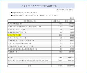 今回メディアラグが寄付したキャップ重量が公開されていました!