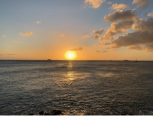 そして公園からは左を向けばワイキキビーチが一望でき、右を向くと沈みゆく夕日が見えて、