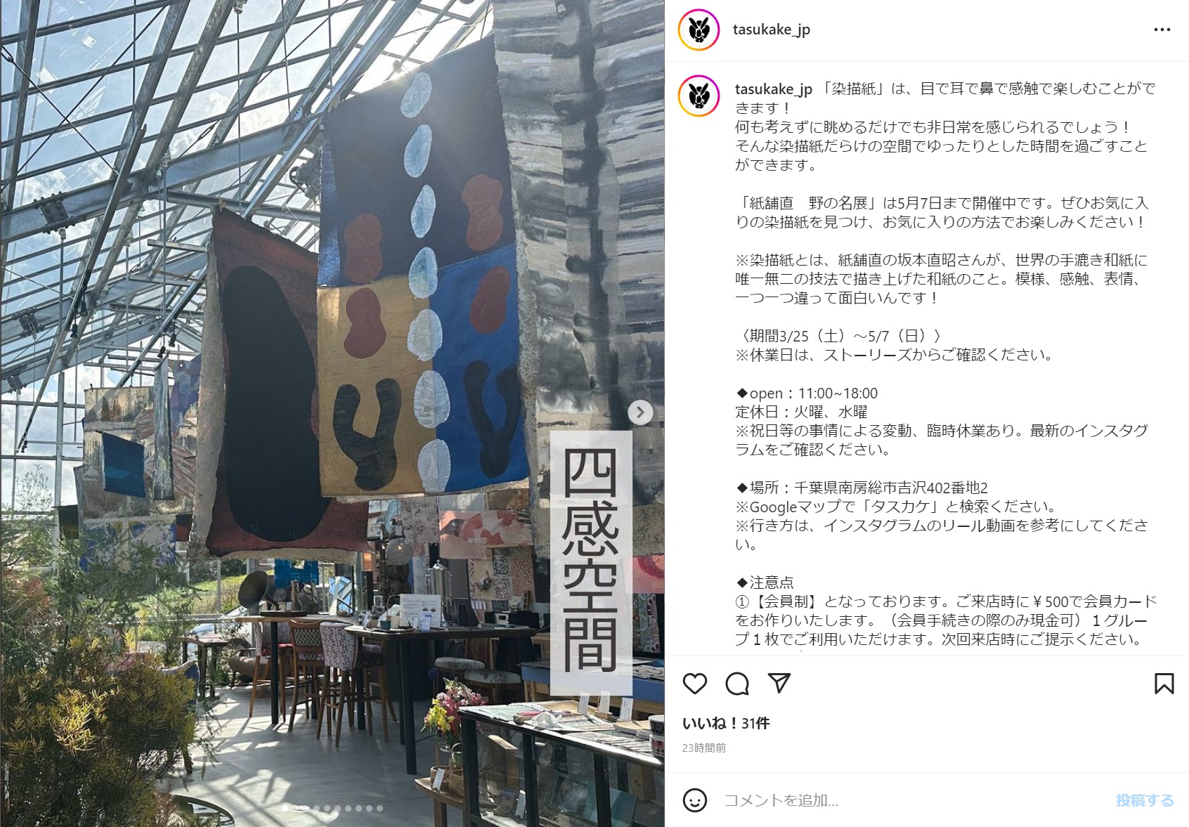 タスカケ様 千葉南房総工房「紙舗直 野の名展」開催中