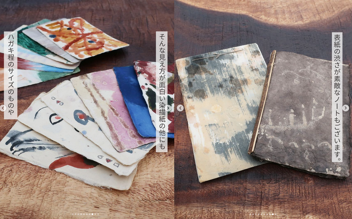 手すき和紙を自然の染料で染めた染描紙。染描紙とは、坂本直昭さんが、世界の手漉き和紙に唯一無二の