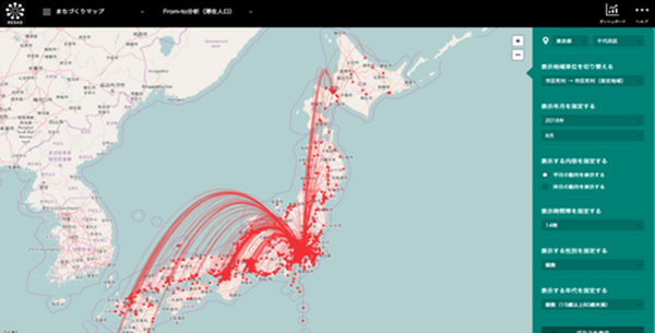 日本全国の人口、産業取引、携帯電話からの移動データ、税金など、行政および民間事業者のビッグデータを集約・可視化するシステムの開発/運営。
