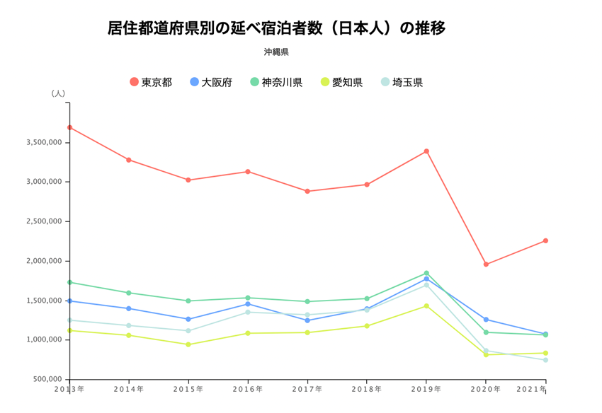 今回は、沖縄県へ移動・宿泊した人の推移を例にしてご紹介します。