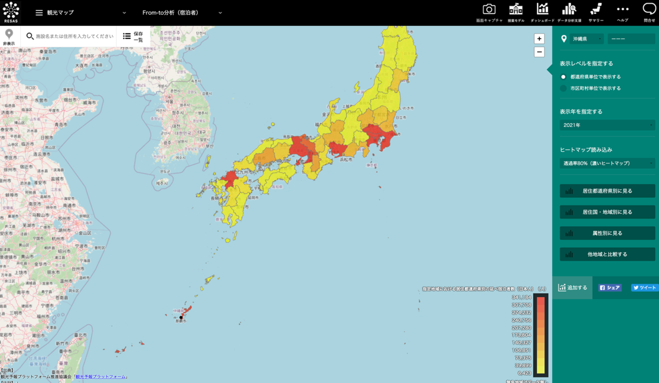 さらに、この情報を元に他の都道府県からの来訪者が沖縄県で消費した金額や実際滞在した地域、
