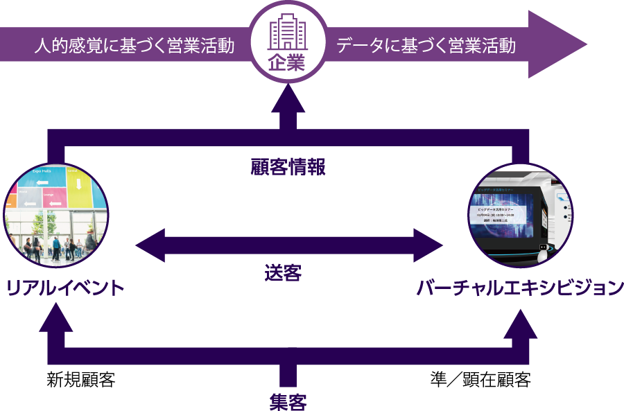 エキシビジョンプラットフォーム「VEOS」は常に変化する顧客ニーズを的確に捉えることで、顧客接点の増加とその後の営業活動をサポートいたします。