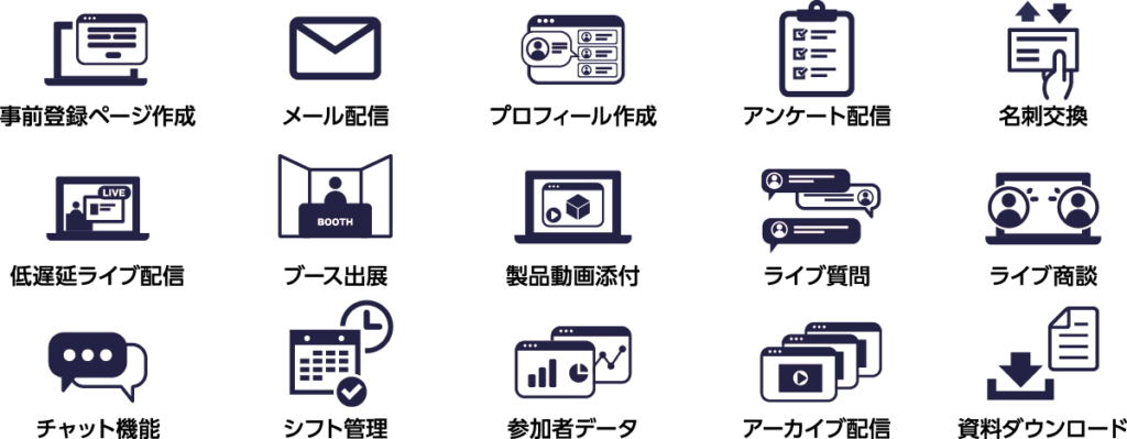 - オンライン商談、チャット、名刺交換などの機能でイベント参加者とのコミュニケーション促進を支援