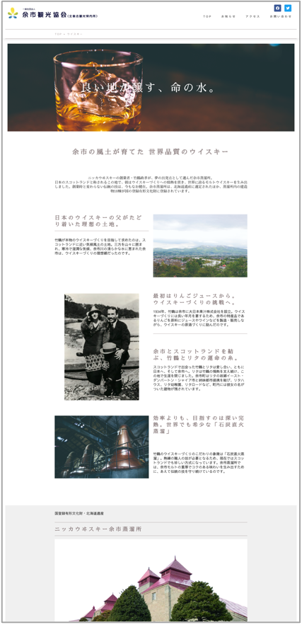北海道余市町は、道内観光入客数のTop1、2が近隣にあり、朝ドラ「マッサン」やニッカウイスキー蒸溜所、日本有数のワイン用ぶどう畑など、恵まれた環境にありつつも、観光客数に課題がありました。